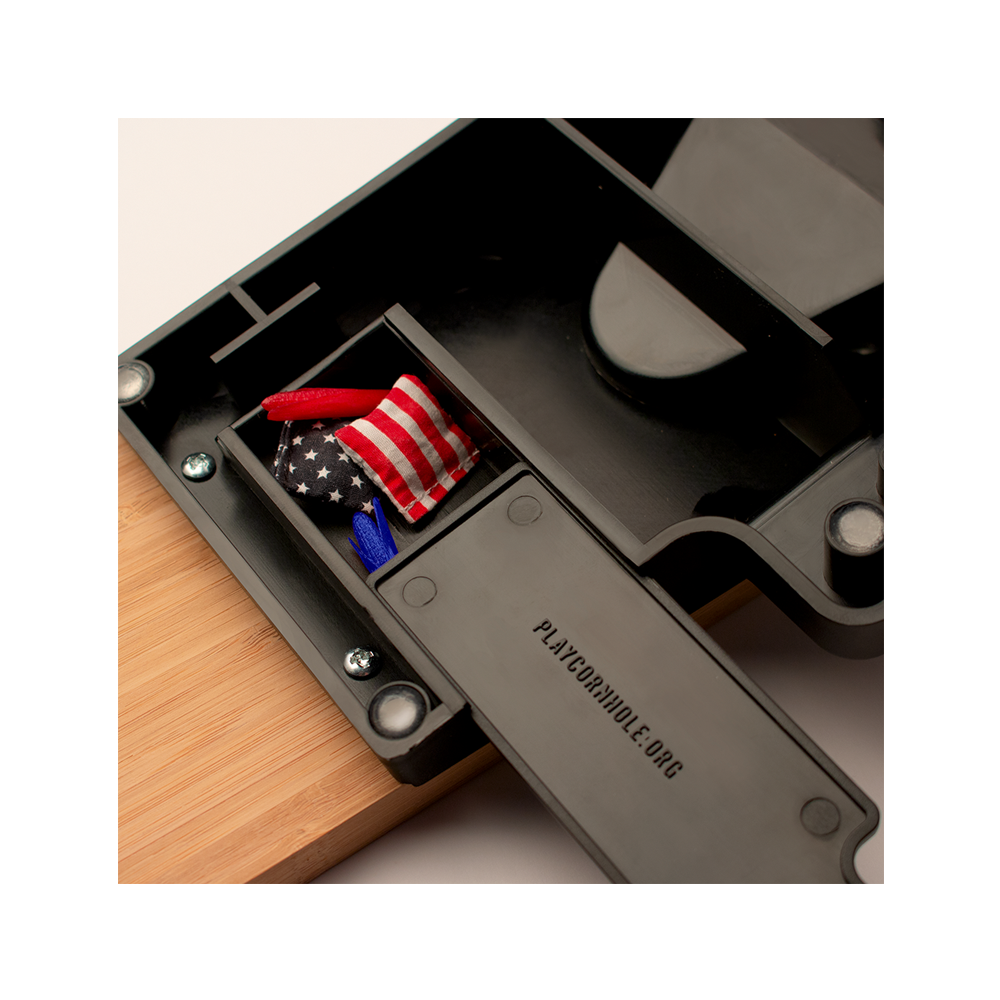 • Opbergvakken om gemakkelijk acht (8) mini-tassen en twee (2) scorepennen op te bergen